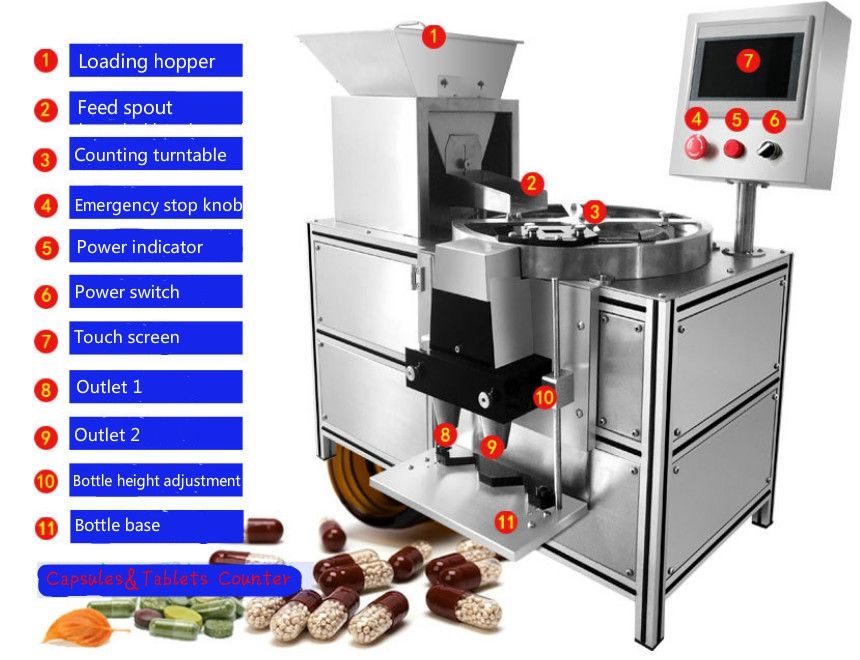 The automatic capsule tablet pill counting machine has been designed and developed to count & fill different shapes or size of products accurately like soft gel capsules,hard capsules, tablets, sugar coating, and film coating tablets, pills, herb medicine or similar products into containers or vials.
