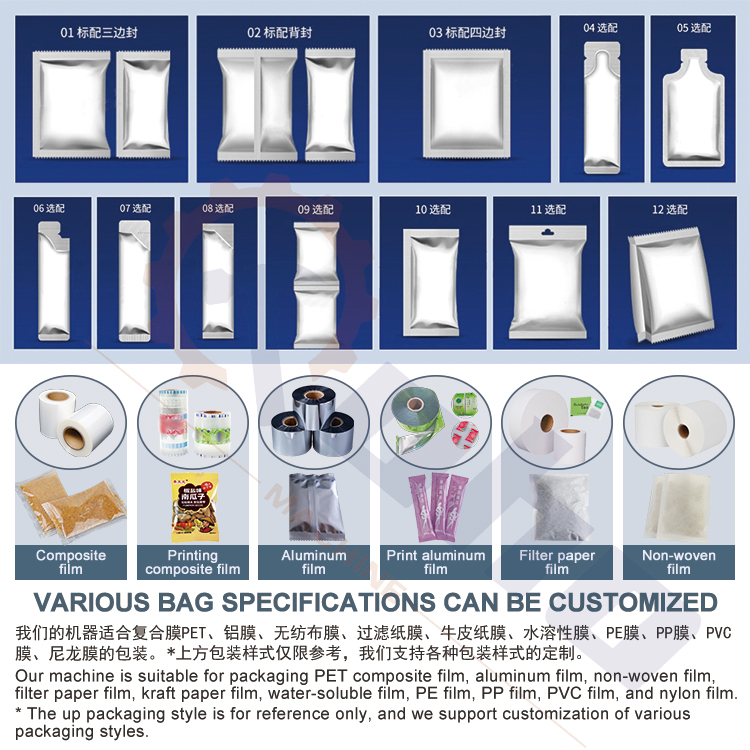 3. The same quantitative packaging machine can be packed 0.1-100g by adjusting and replacing filling parts of different specifications with the keyboard of electronic scale.